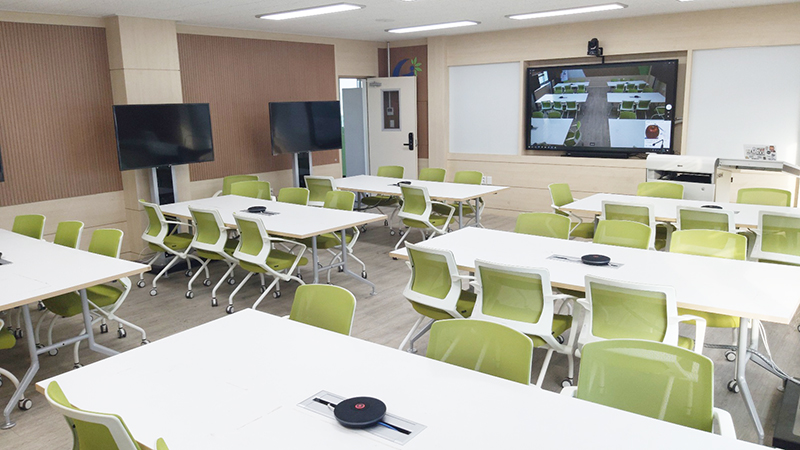 RC821U PTZ 카메라, RM702 마이크, S22 스피커를 대형 회의실에서도 원활한 화상회의를 진행 할 수 있도록 설치하였습니다.